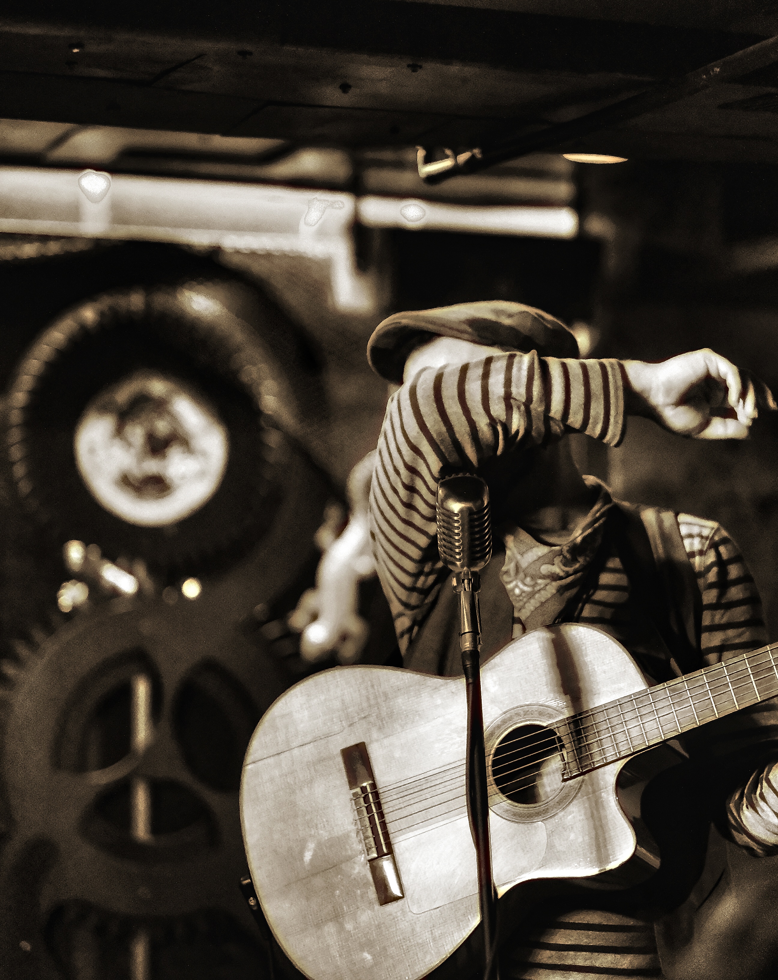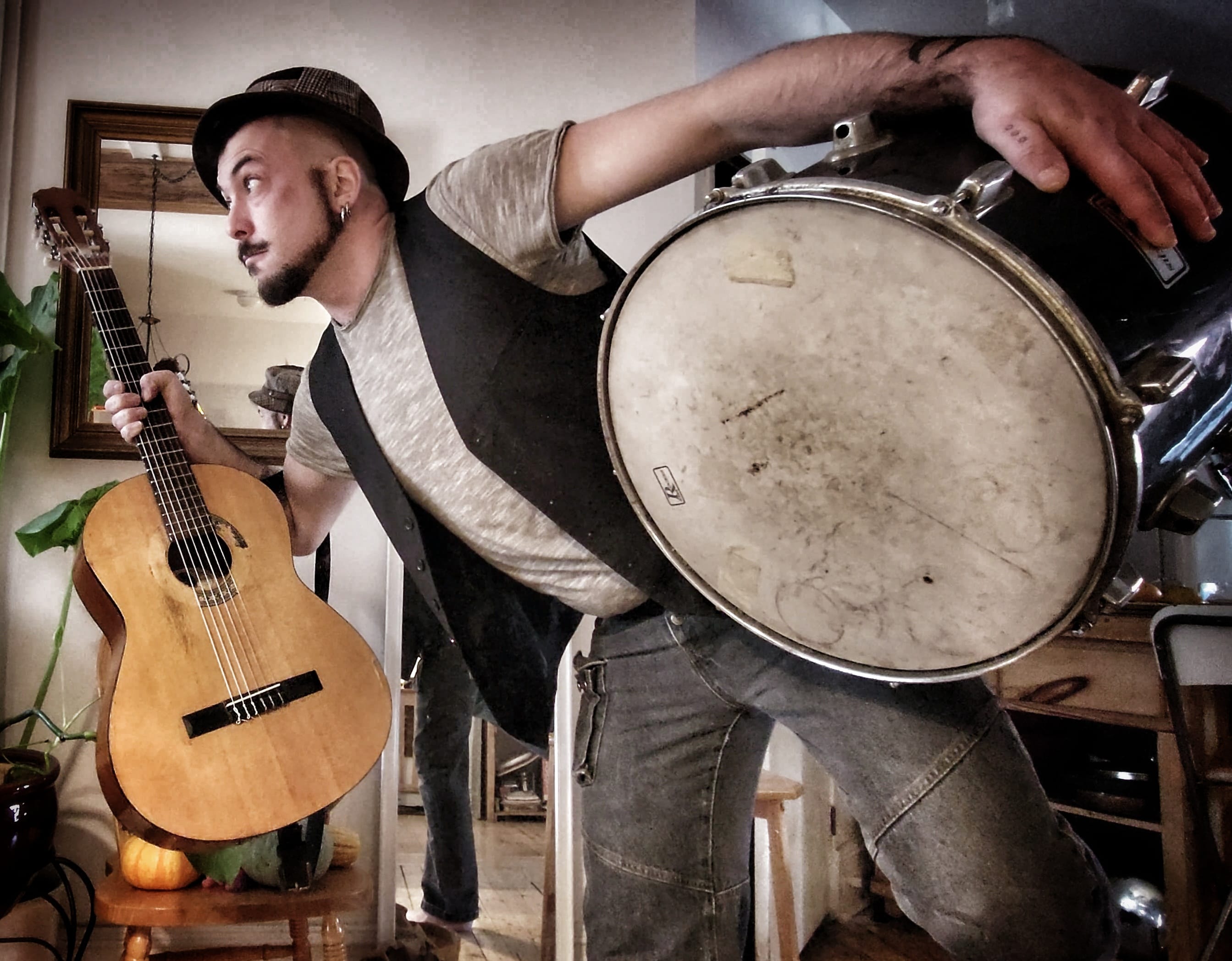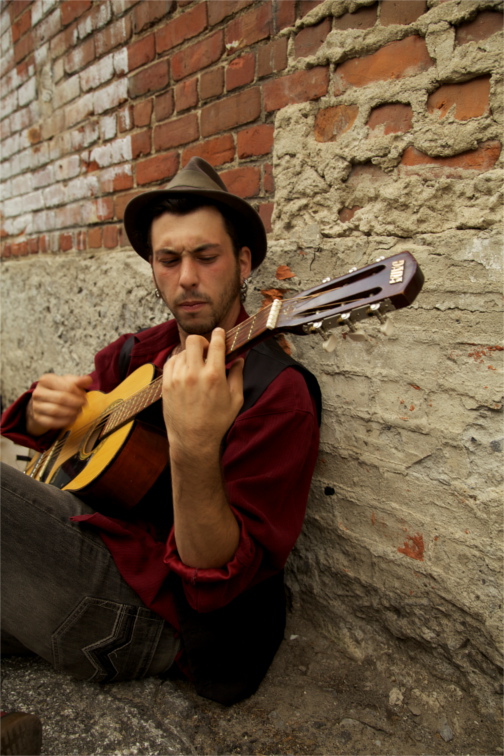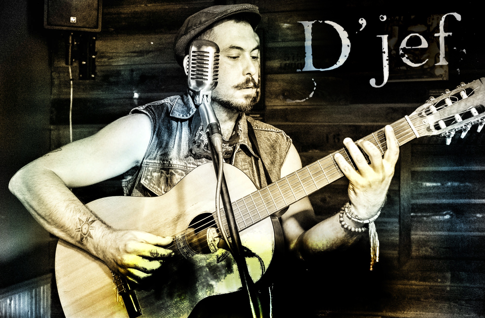 «D’jef» c’est un « patchwork » de styles. Des textes touchants et grinçants sur fond de musique déjantée où les lignes de blues se fondent à des passe-passe flamenco. Auteur-compositeur interprète, il vous fait dérivé dans un monde qui se situe quelque part entre poésie et dérision. Ayant appris à animer les foules par d’innombrables spectacles de rue et sur les scènes à travers le Canada, l’Europe, et l’Amérique Latine, il décape l’ordinaire des choses avec une musique rapiécée aux sonorités d’Europe de l’est, de hiphop, de flamenco, de jazz et de blues.